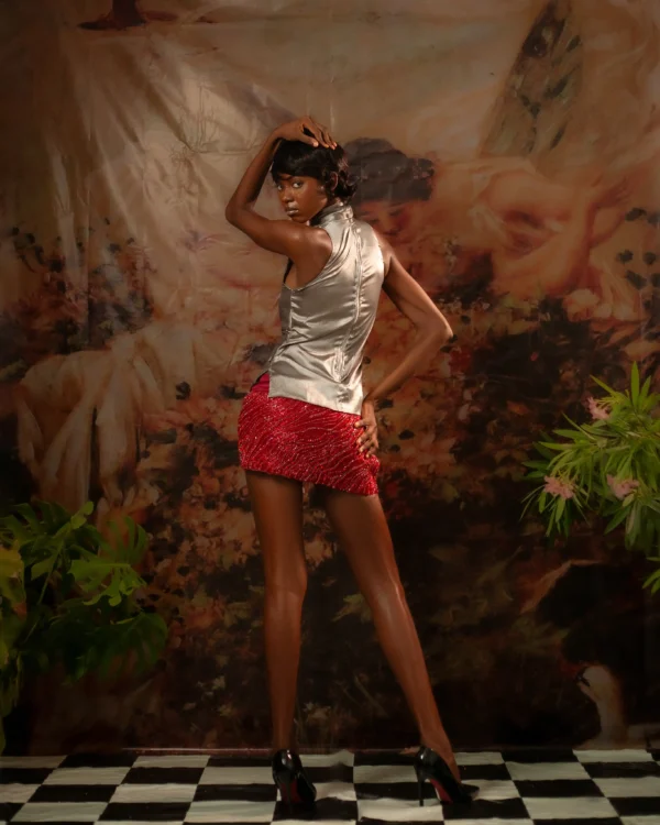 Look 12 – The Red Hand Embroidered Mini Skirt